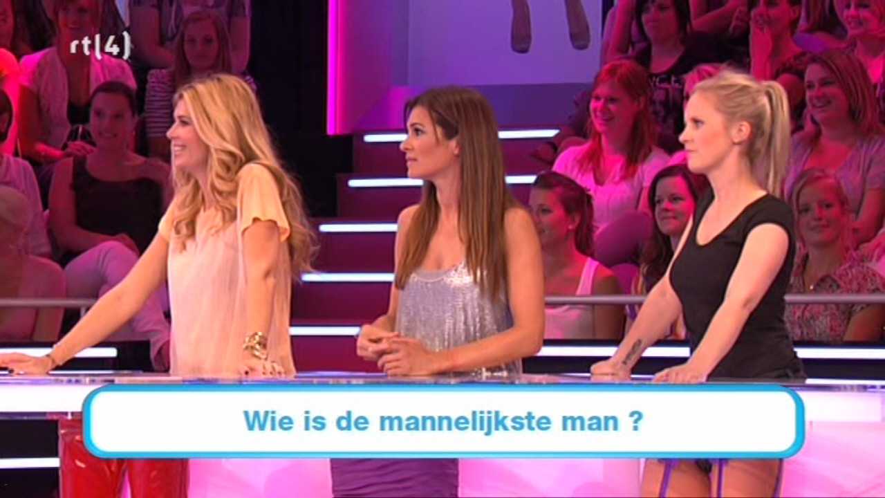 Nederlandse TV vrouwen Chantal Janzen, Quinty Trustfull, Estelle Gullit en Bettina Holwerda in 'De Jongens tegen de Meisjes'